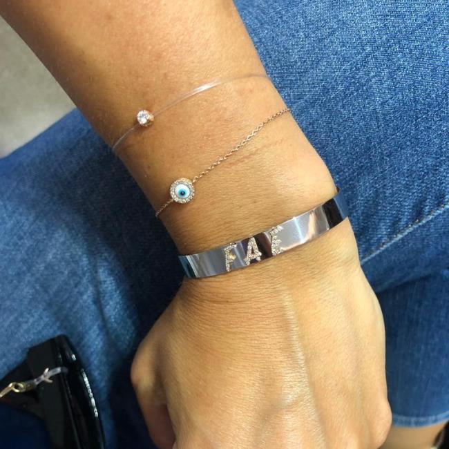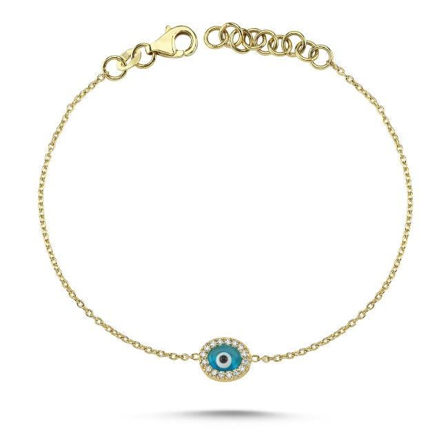 Nazar Boncuklu Çift Taraflı Pırlantalı Bileklik14K İstenilen Altın Renginde0,11ct F VS Pırlanta